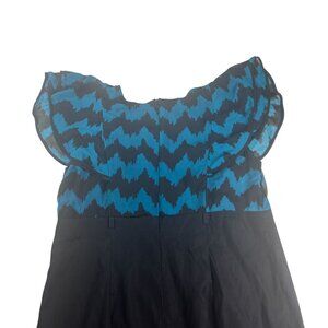 Alyx Chevron Flutter Sleeve Dress Women's 16W Blue & Black Knee Length