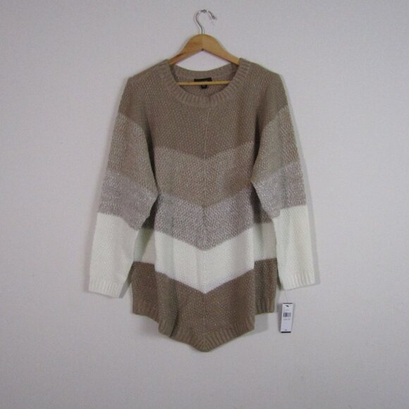 Alyx Colorblock Sweater 1X Tan Asymmetrical Knit Cozy Shimmer Normcore Casual
