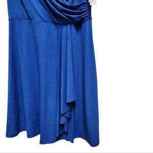 New Alyx Limited Womens Dress Size XL Blue Faux Wrap Sleeveless Ruched Ruffle Party Wedding Stretchy Travel Cruise Asymmetrical