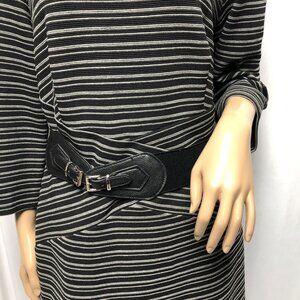 Alyx Limited Dress with Belt Womens Size 14 Stretch Black Gray Striped Sheath
