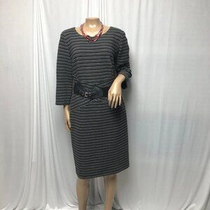 This Alyx Limited dress in size 14 offers a professional look with black and gray stripes. Crafted from polyester and spandex, it provides a comfortable fit with a touch of sophistication. The included belt accentuates the waist, making it suitable for workplace settings.