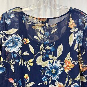 Alyx Womens Floral Two Piece Short Sleeve Top Navy/Multi Size Small