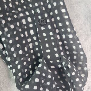 Alyx Womens Sheer Shirt Dress Black White Dot Print Button Front Size S Career