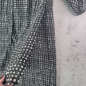 Alyx women’s size small sheer shirt dress 👗 Black with white abstract dot print ⚪ Button front, chest pockets, and 3/4 roll-tab sleeves ✨ Lightweight flowy style perfect for layering, office, or casual outings.