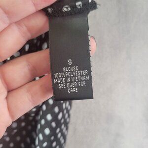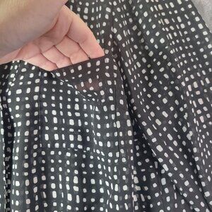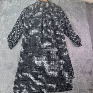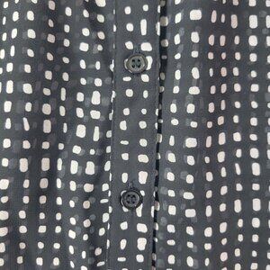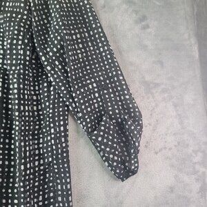 Alyx women’s size small sheer shirt dress 👗 Black with white abstract dot print ⚪ Button front, chest pockets, and 3/4 roll-tab sleeves ✨ Lightweight flowy style perfect for layering, office, or casual outings.