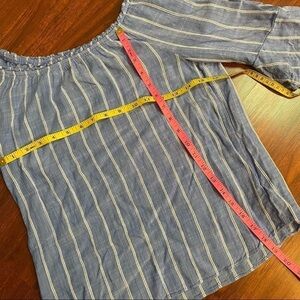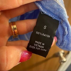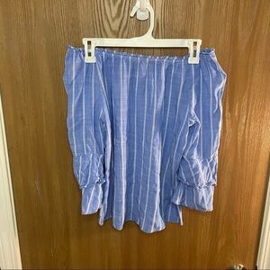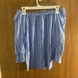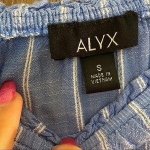 Alyx Blue and white size small 100% rayon Off the shoulder top Excellent Preowned condition