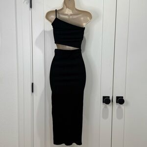 Amable By Mable Midi Dress Cutout One Shoulder Ribbed Black Small Cocktail Party