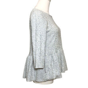 Amadi Anthropologie Gray White Textured 3/4 Sleeve Peplum Top Relaxed Small Boho