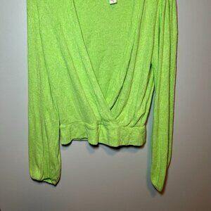 Amadi Anthropologie lime green v-neck cropped ribbed pull over sweater Small