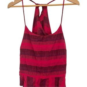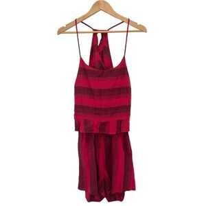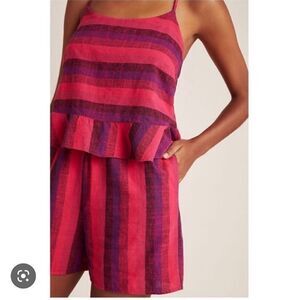 Amadi Anthropologie Striped Romper Linen Purple Pink Ruffle Sleeveless