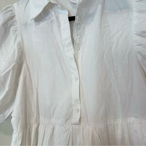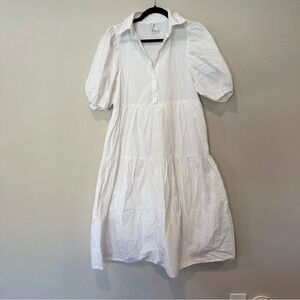 Amadi Cordelia Anthropologie White Crisp Puff Sleeve Tiered Midi Shirt Dress XS