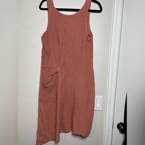 Amadi Shayna Rust Sleeveless Dress with Knot Detail. Slub Cotton. Size M, Travel