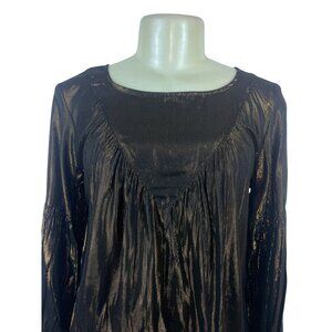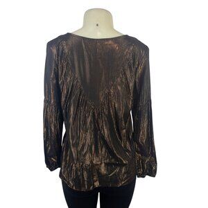 Amadi Womens Metallic Bronze Long Sleeve Blouse XS