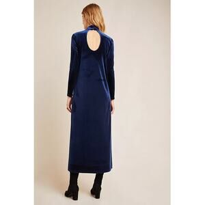 Amadi by Anthropologie Bianca Mockneck Velvet Maxi Dress Navy Blue Women's Large