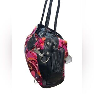 Amado Women's Crossbody Leather & Fabric Convertable Day BagBraided Handles NWOT