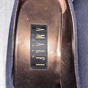 Amalfi Italy women's black leather suede block heel pumps vintage 9 Italian made