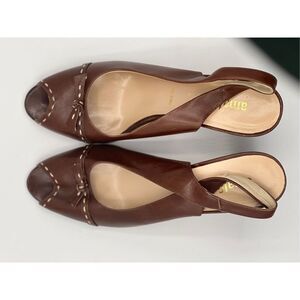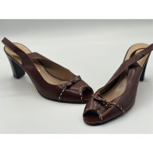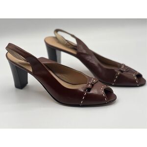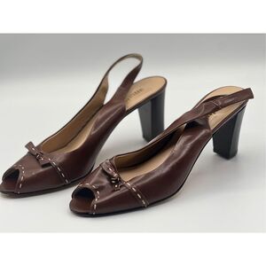 Amalfi Women's Pep Toes Block Heels Leather Sling Back Pumps Brown Size 9.5