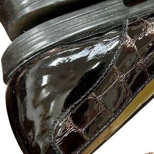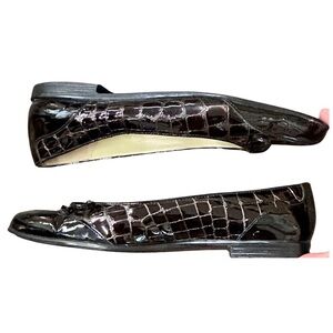 Amalfi by Rangoni Black Croc-Embossed Patent Leather Flats – Size 11M