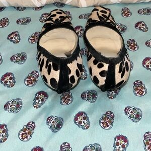 Beautiful print, fur like texture. Stored in the original box. All leather. This is a true statement heel