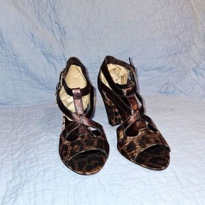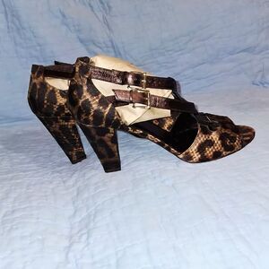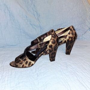 Stylish Amalfi chunky heels with leopard pattern. Strappy design with buckle detail. Perfect for a bold look. Pre-owned in good used condition. Please refer to pictures for best description and condition verification.