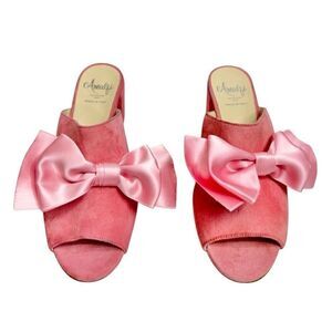Amalfi Mules Size 7 Pink Suede Leather Slip On Block Heel Open Toe Made in Italy