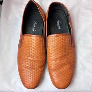 Amali Harmon Driving Loafer Men 12 Genuine Woven Leather Lined Chestnut Moccasin