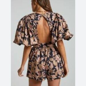 Amalie Showpo Dessie Floral Tie Front Open Back Puff Sleeve romper US 6