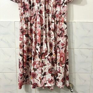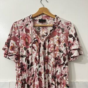 Amana M Pink White Floral Flutter Sleeve Preppy Romantic Feminine Mini Dress