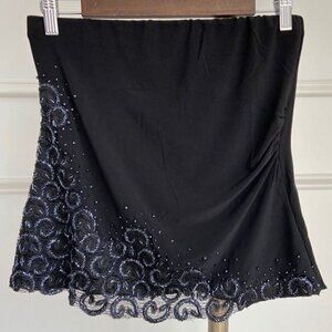 Amanda Adams Couture Black Strapless Hand Beaded Top Embroidered Lace Panel Sz M