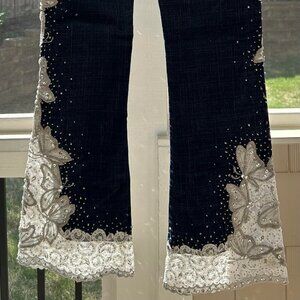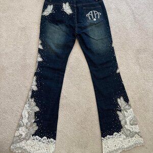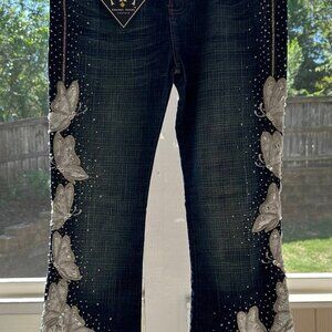 Amanda Adams Couture White Lace and Butterfly Embellished Jeans