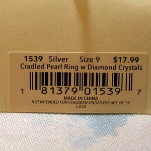Amanda Blu | Cradled Pearl Ring w Diamond Crystals | Size 9