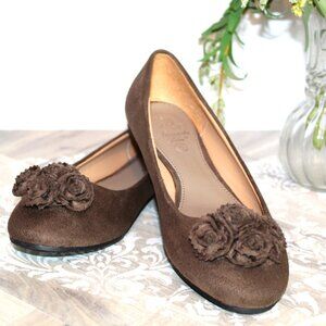 Super sweet, like new taupe suede flowered ballet flats. Size 6. Excellent condition!!