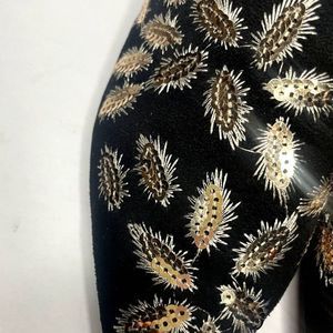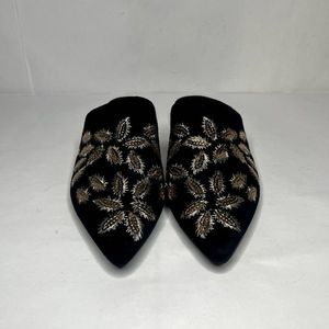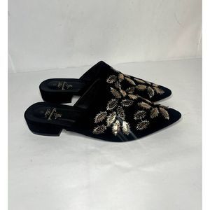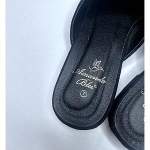 Amanda Blu Mariah Suede Mules Slip On Black & Gold Decorative