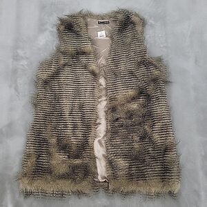 Amanda Blu Womens Owl Vest Size Large Long Fur Brown Cute NEW Open Front Pockets