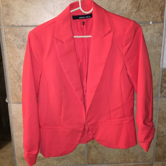 Red/Orange 3/4 sleeves blazer. Great jacket to wear to work. Sophisticated, unique and adorable! Size 4. Fits like a small.