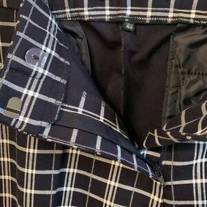 NWT Crop Slim Pant. Slim leg. Comfortable stretch with ponte knit. Zip fly plus hook/bar closure. Back welt pockets. 26” inseam. Color Navy plaid. Rayon/Nylon/Spandex Size 14W