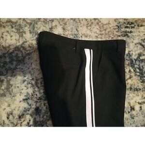 Elevate your wardrobe with these stylish black and white striped dress pants from Amanda + Chelsea. These pants feature a convenient closure with zipper, button, and hook & eye accents, and a comfortable fit with stretch features. The flat front and straight leg style make them perfect for casual occasions in the fall and spring seasons.