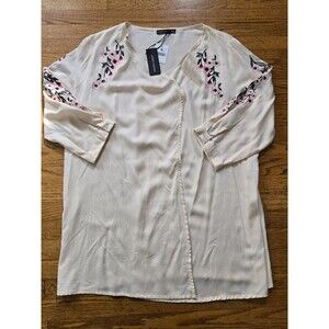 Amanda Green floral embroidered 3/4 sleeve open front blouse in a size xl.