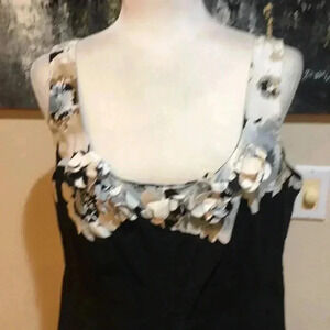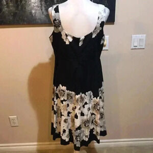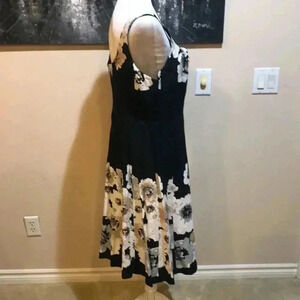 Amanda Lane Black and Cream Floral Tank Style Fit & Flare Dress Size 12