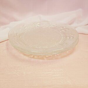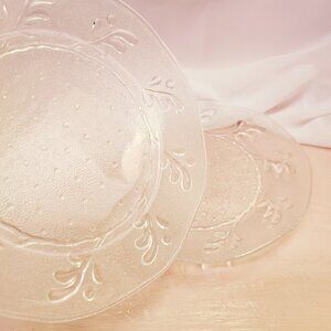 ITEM: 2pc Set Vintage Amanda Luncheon or Salad Plates with Leaves & Dots, Stippled Glass