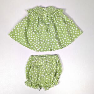 Amanda Remembered adorable lime green and white polka dot outfit with a summer sandal smocked neckline. Size 3m