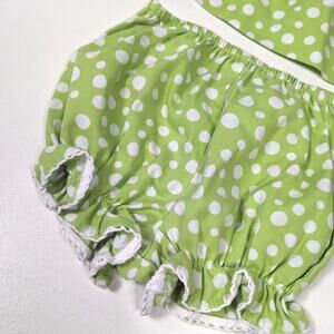 Amanda Remembered adorable lime green and white polka dot outfit with a summer sandal smocked neckline. Size 3m