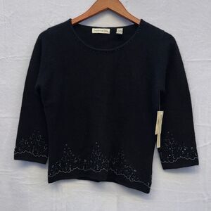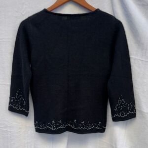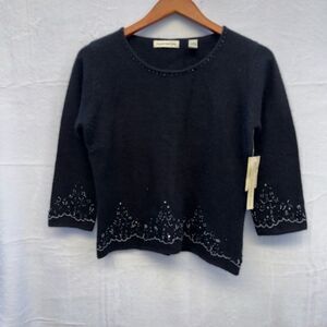 Amanda Smith Black Beaded 3/4 Sleeve Wool Angora Rabbit Hair Sweater Size PM