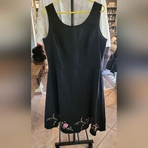 Amanda Smith Black Tank Dress with Pink Floral Embroidery at hem. Size 16.