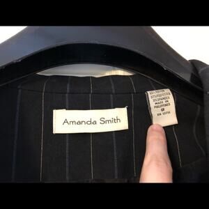 This beautiful Amanda Smith Pinstripe Pantsuit is in very good preowned condition. One button front closure. Faux front pockets. Size 8