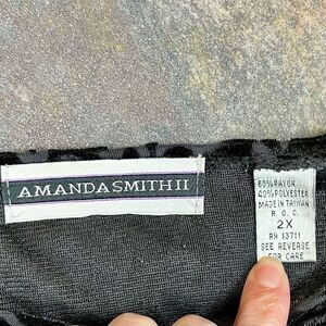 Amanda Smith Black Textured Paisley Velvet 2X Blouse. Measurements in photos. In good, pre-loved (used) condition.