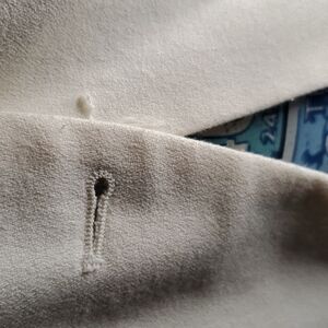 one button missing but there is an extra button on the inside of the coat that can be put on