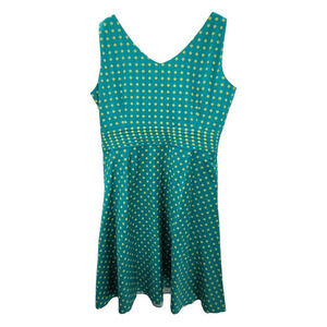 Amanda Smith Yellow Green Polka Dot Sleeveless Pleaded Waste Vintage Circle Dress
