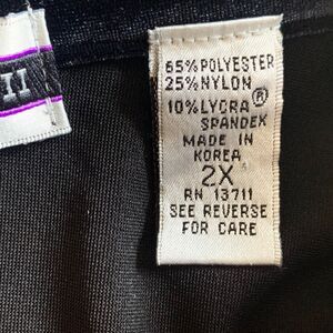 Designed for women, this shirt is a size 2X and is made with high-quality materials to ensure long-lasting wear. The brand is known for their attention to detail and commitment to style, making this shirt a must-have for any fashion-forward individual. This shirt is unlined and is collared and made of Polyester, nylon and lycra so it has some stretch to it. Add this shirt to your collection today and experience the sophistication and style that Amanda Smith II is known for.