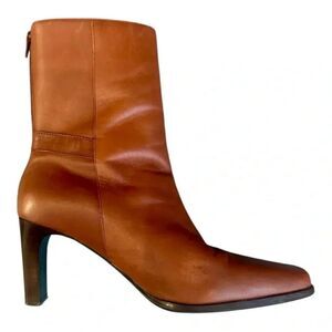 Brown leather Amanda Smith boots 2 1/2 inch heel. These vintage boots have a zipper back. In great condition. These are timeless.